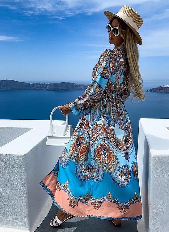 Fashion Long Sleeve Retro Printed Dress