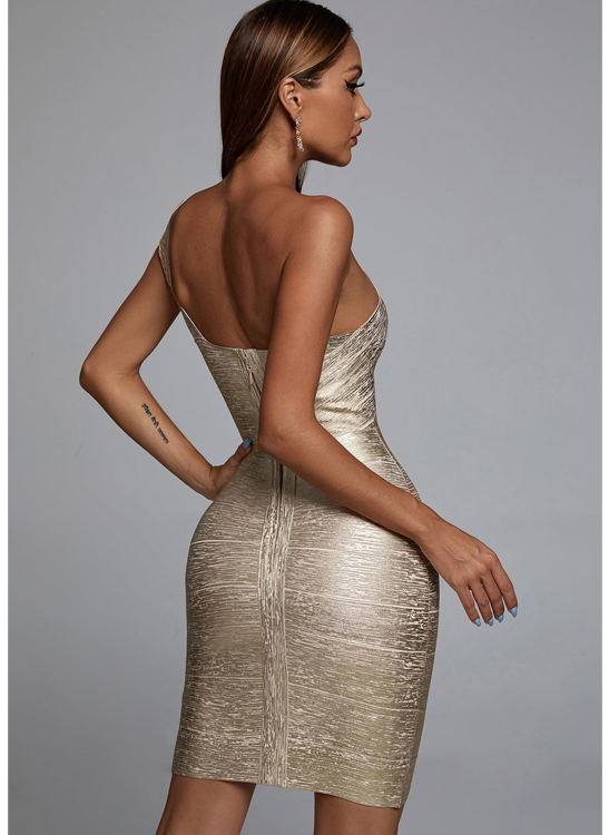 Fashion One Shoulder Gold Bandage Mini Dress