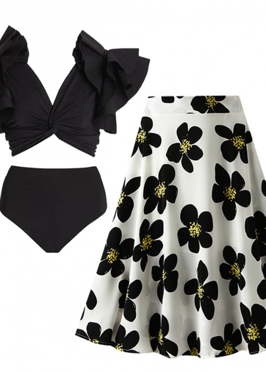3D Flowers Tulle Suspender Tube Top Yellow Two Piece Set(Size runs small)