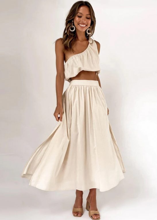Fashion Fold Solid Color Off Shoulder Two Piece Set