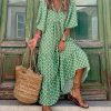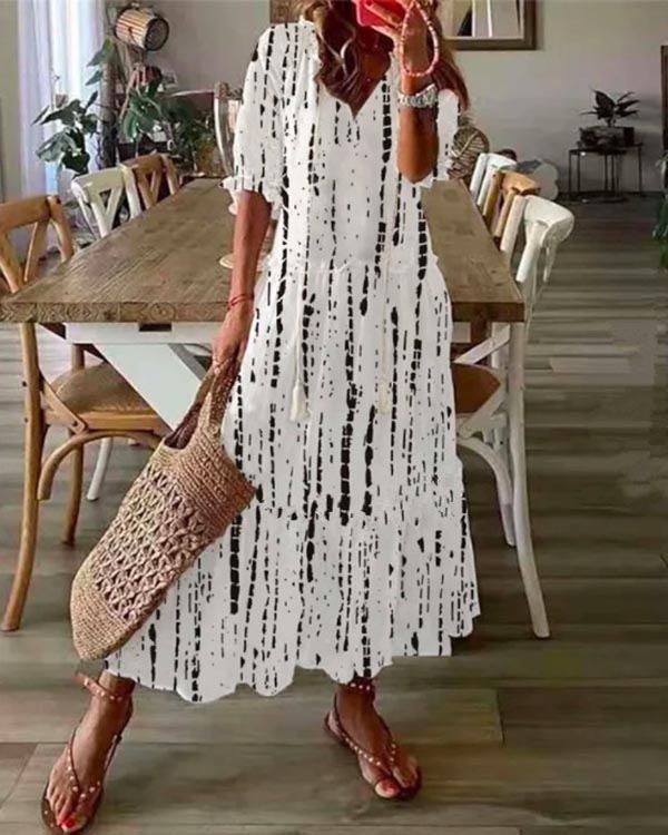 Bohemian V Neck Tassel Short Sleeve Long Dress