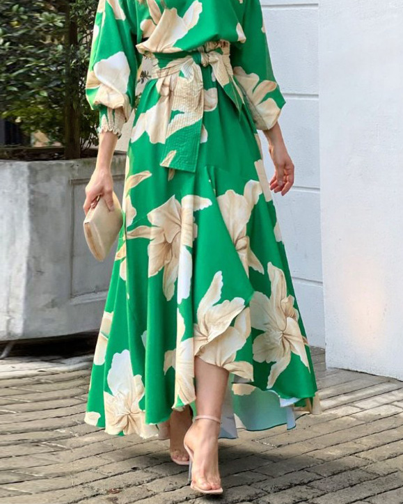 | Product Name | Casual Fashion Print Lace-Up Dress |