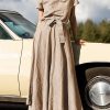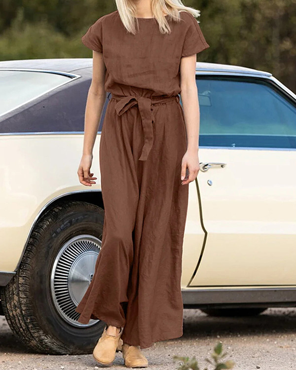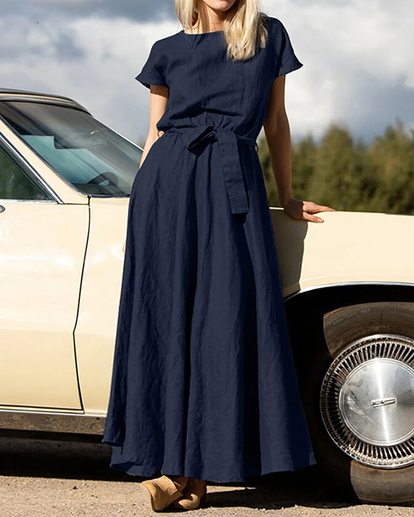 Casual Short Sleeve Drawstring Pocket Linen Dress