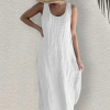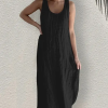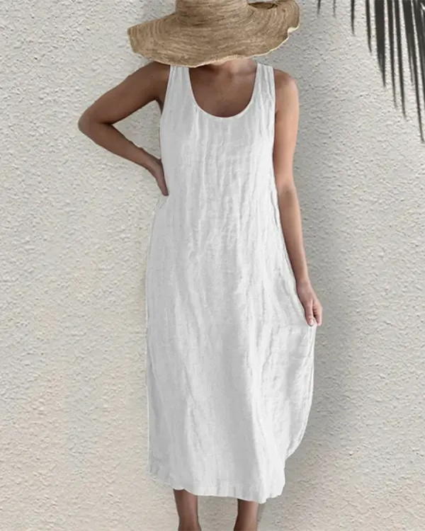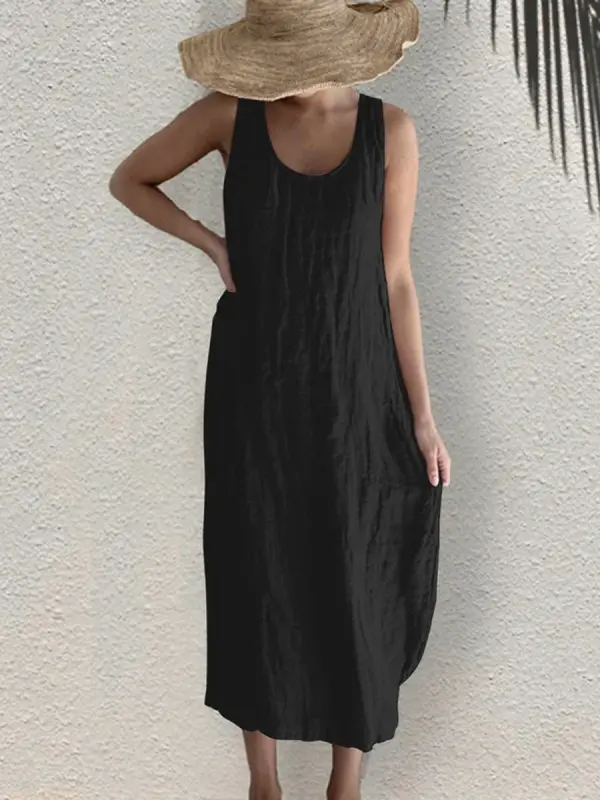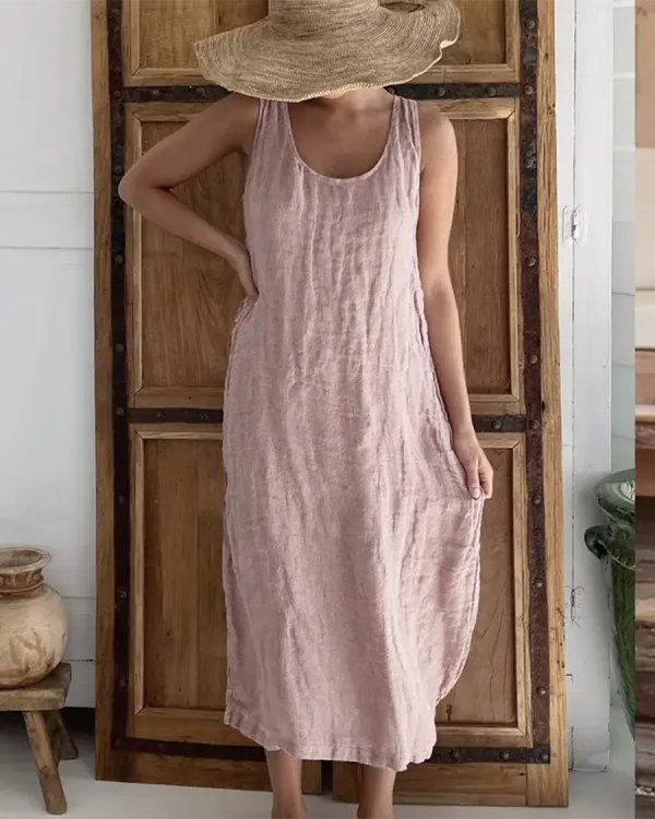 Round Neck Sleeveless Cotton Linen Midi Dress