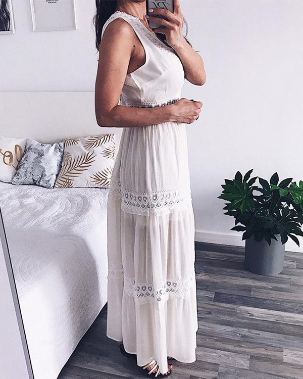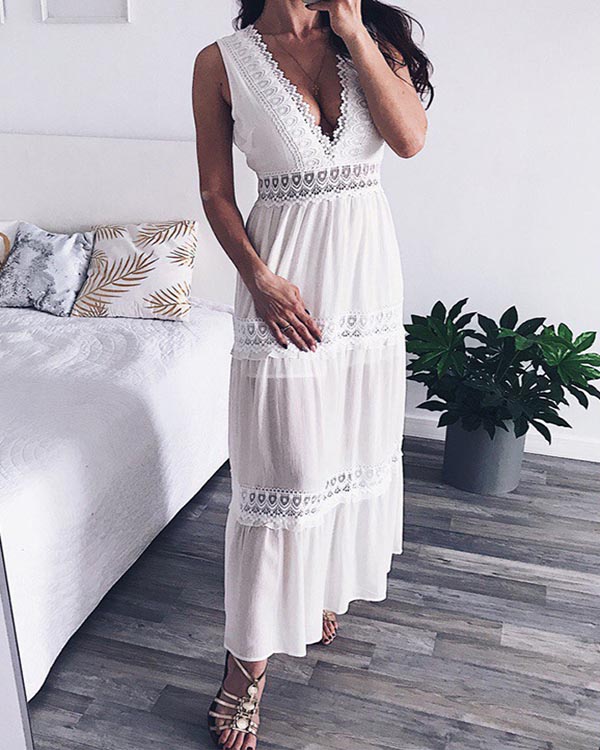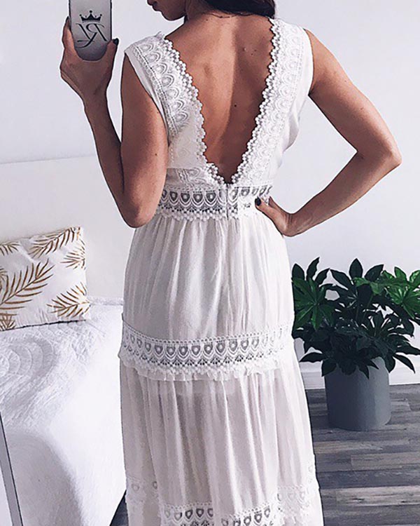 Sexy V Neck Lace Holiday Sleeveless Dress