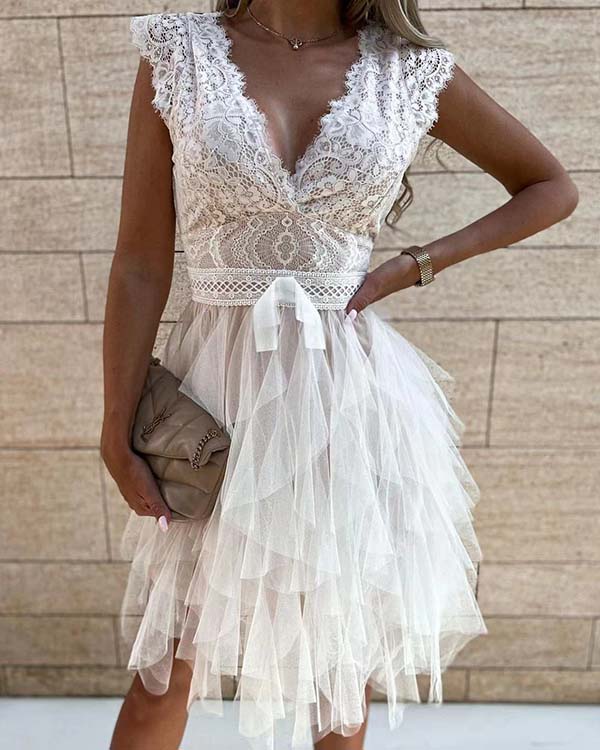 Sexy V-neck Lace Panel Dress