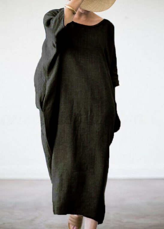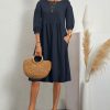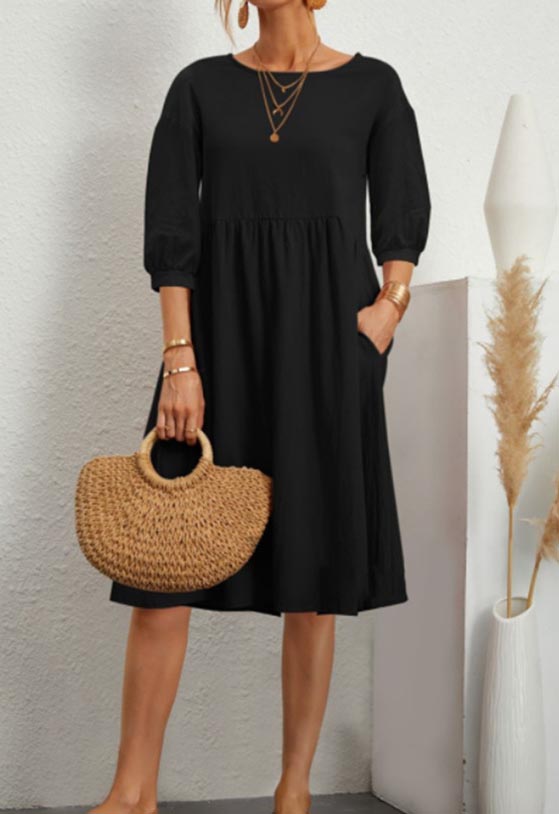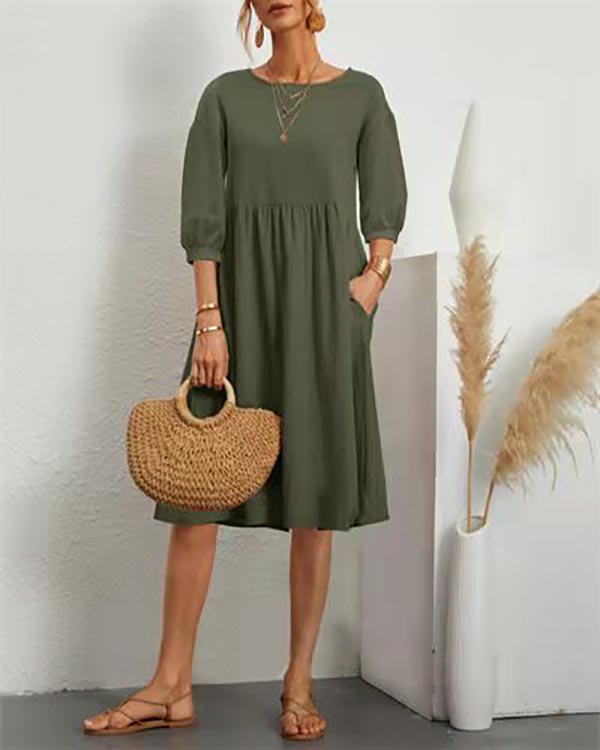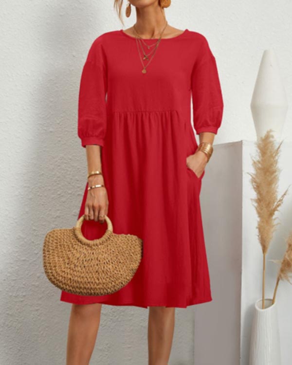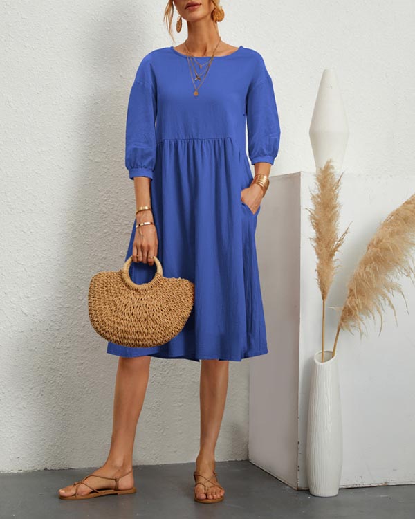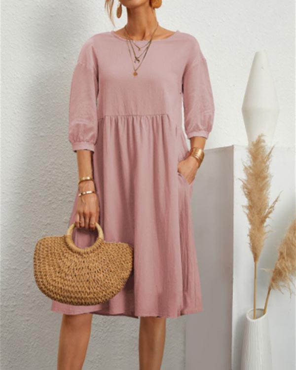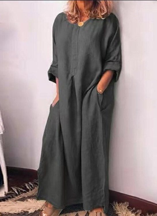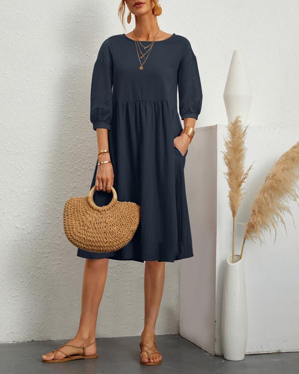 Solid Loose Linen Pocket Dress
