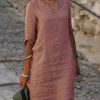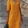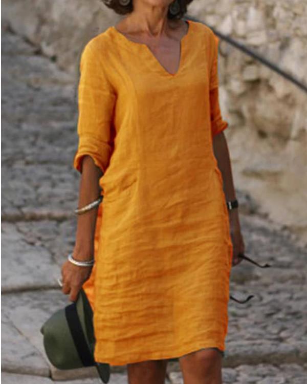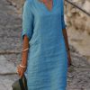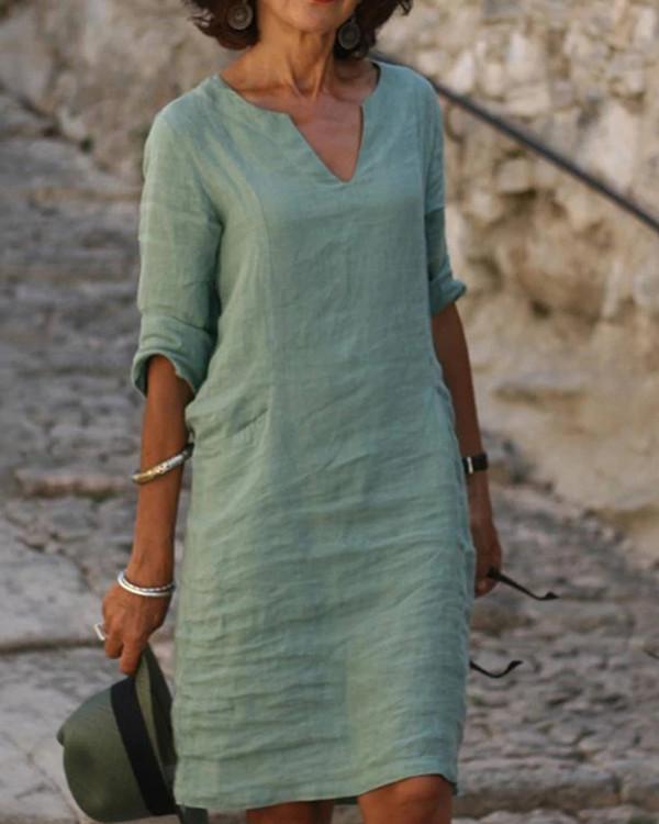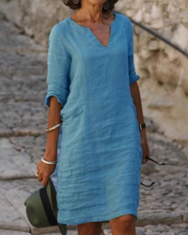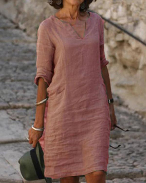 Solid V-Neck Long Sleeve Casual Summer Dresses