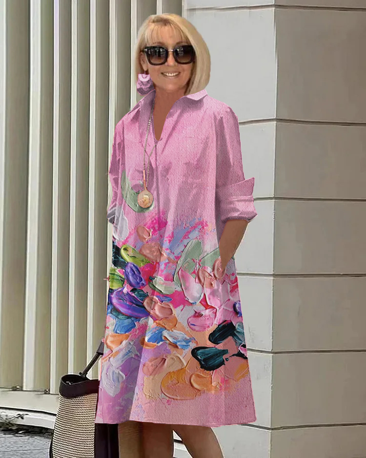 Spring and Summer Long Sleeve Pocket Shirt Dress