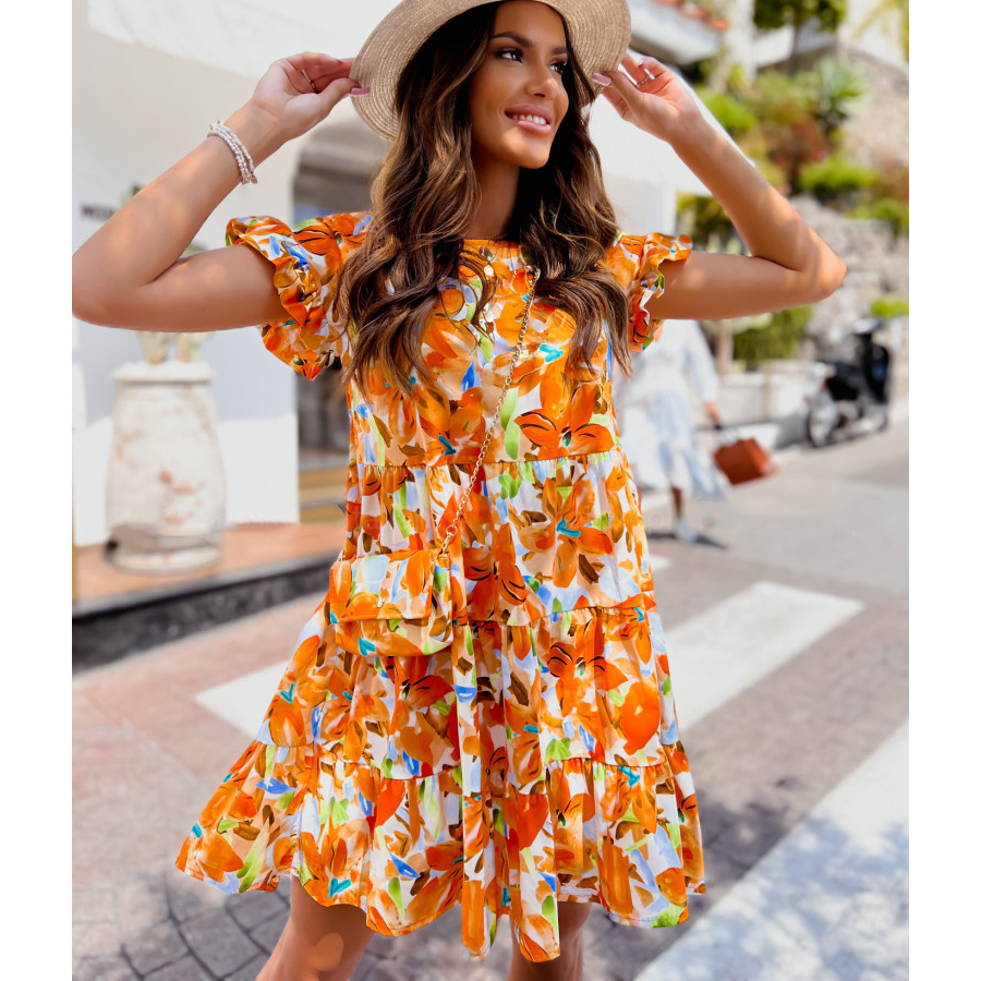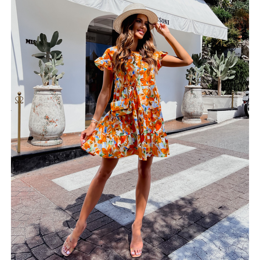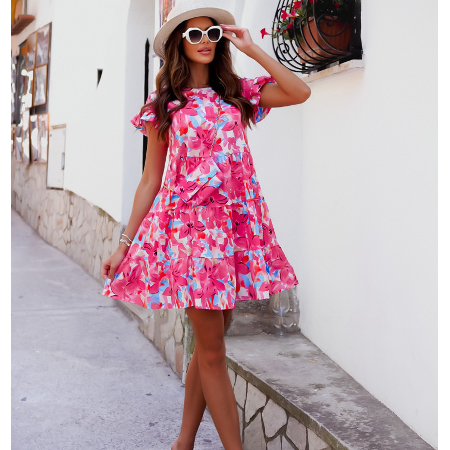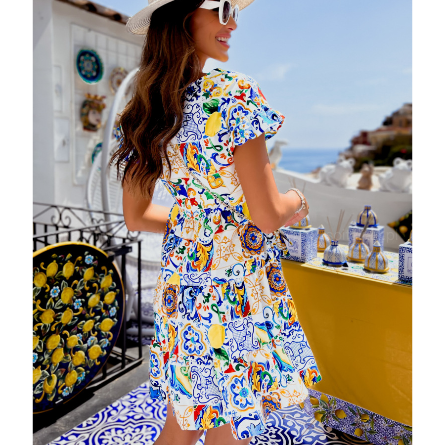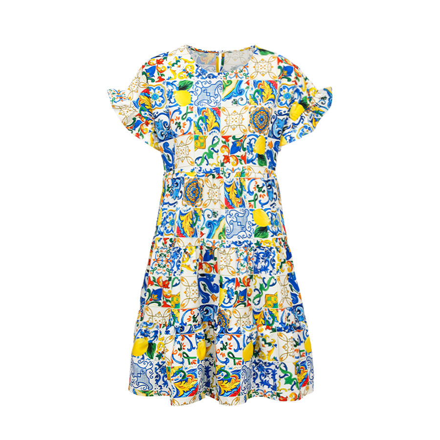 Retro Printed Frilled Dress