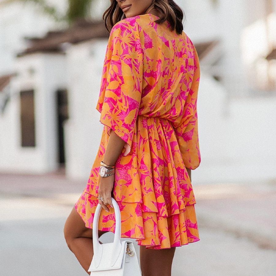 V Neck Loose Blossom Printed Dress