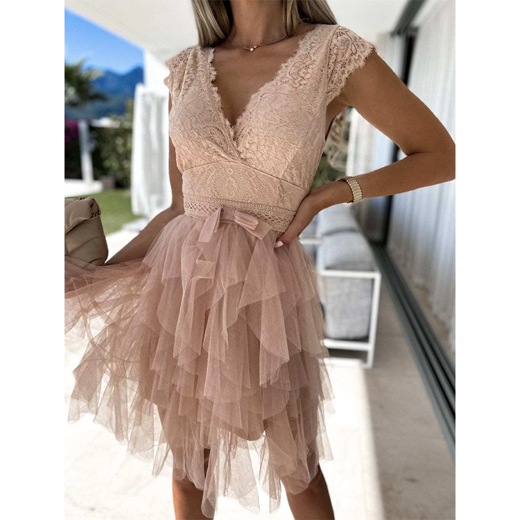 Sexy V Neck Sleeveless Lace Midi Dress
