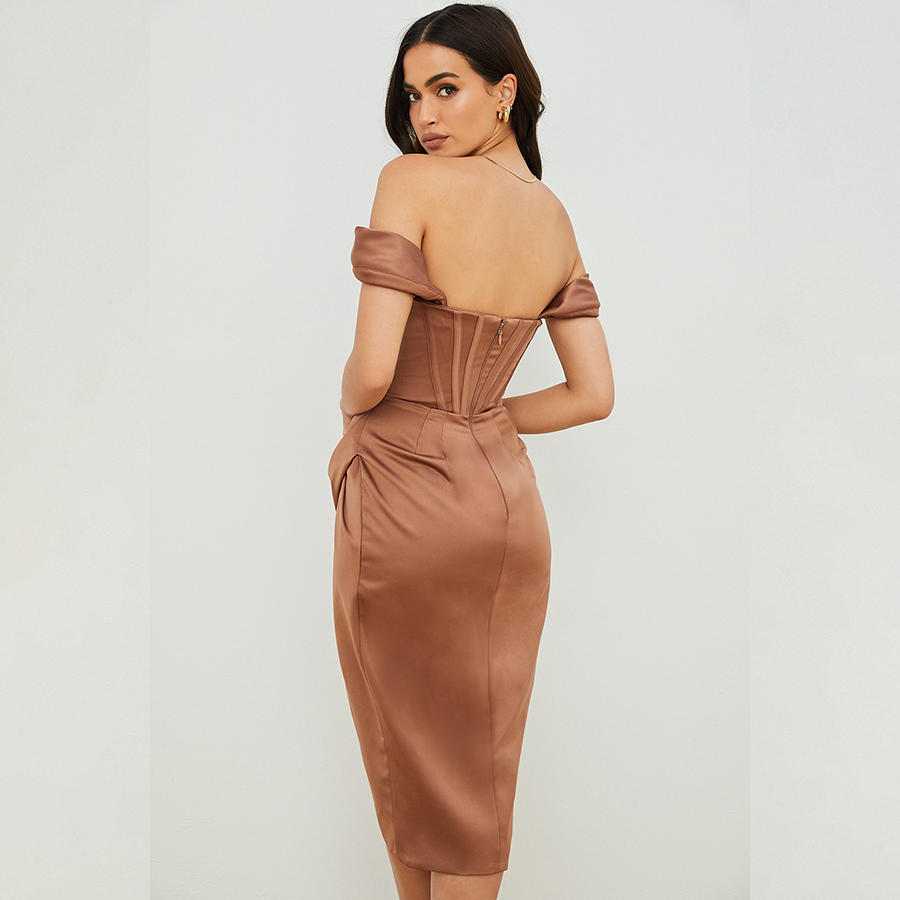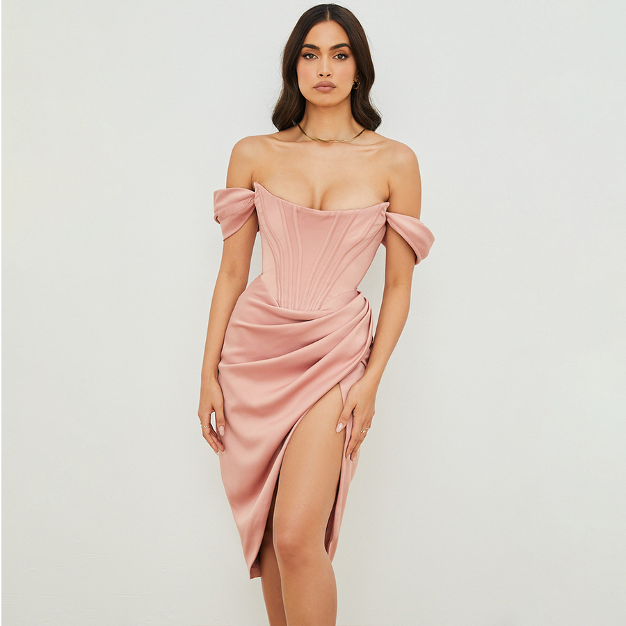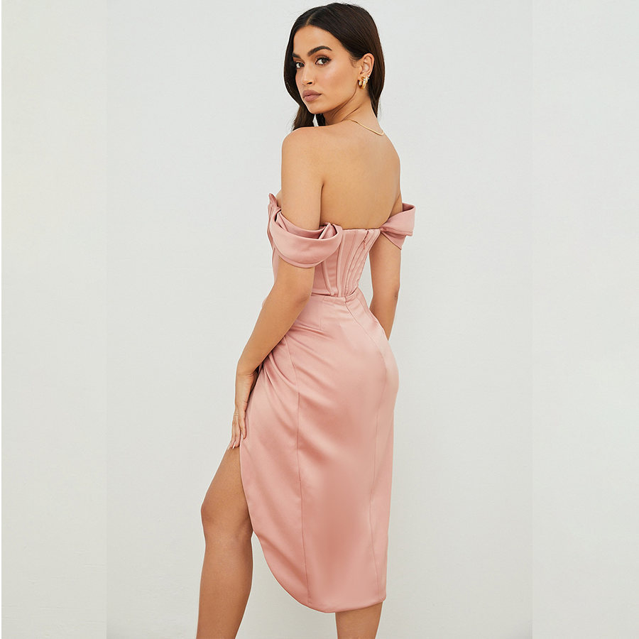 Bandeau Off Shoulder Slit Dress