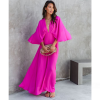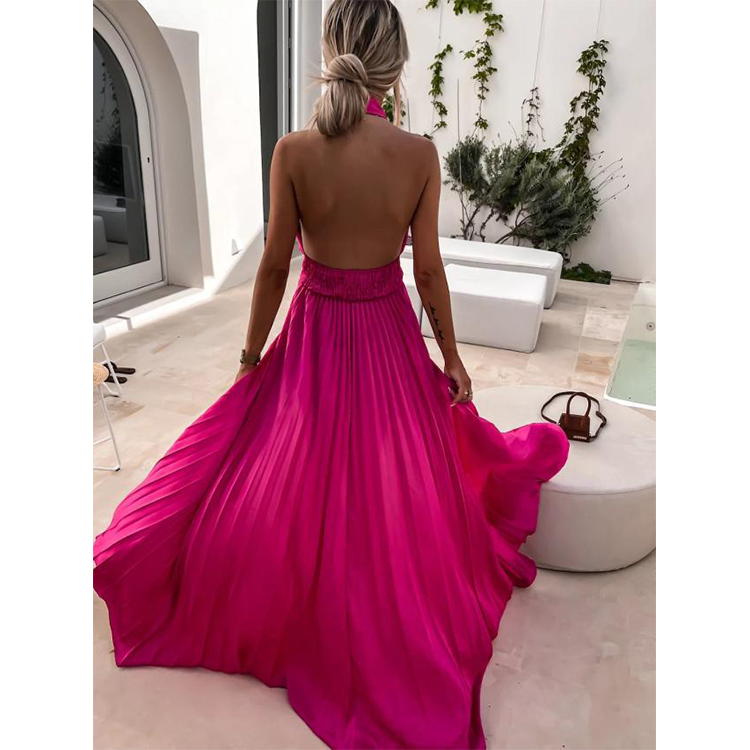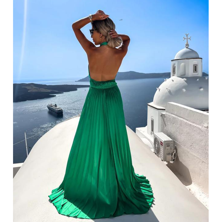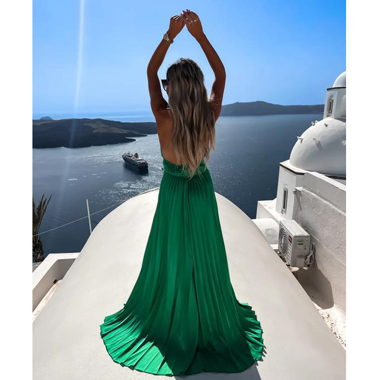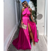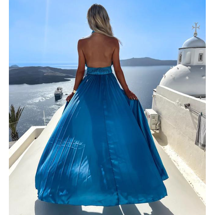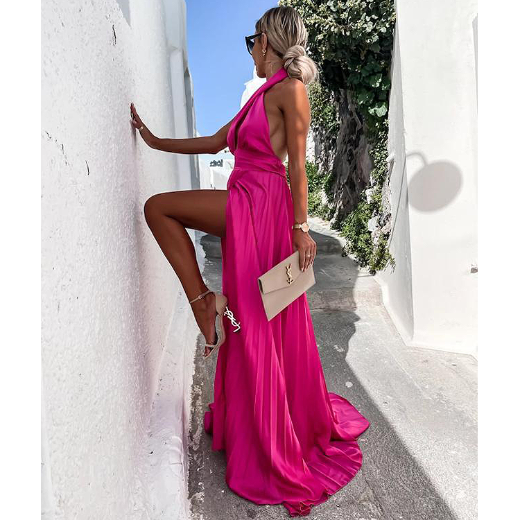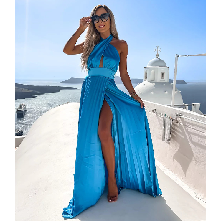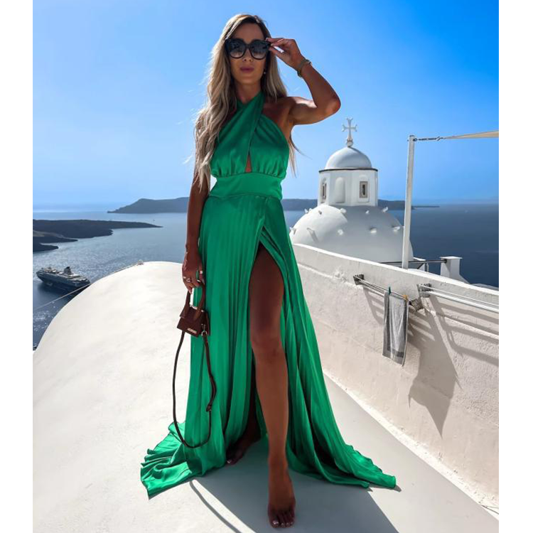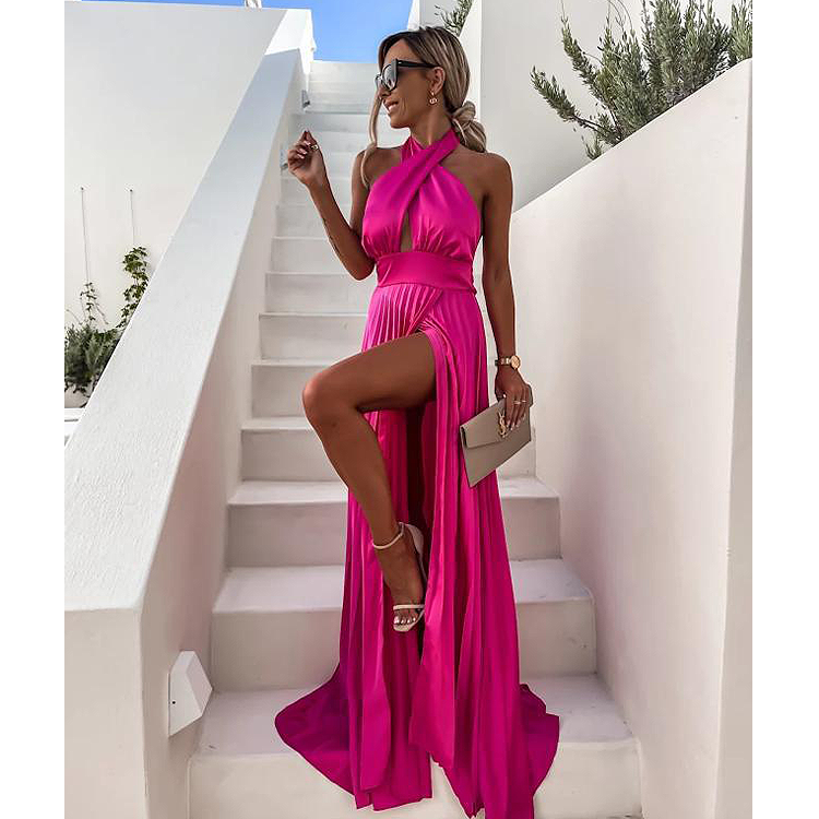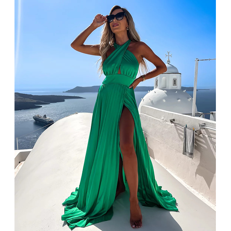 Cross Neck Satin Ruffle Maxi Dress