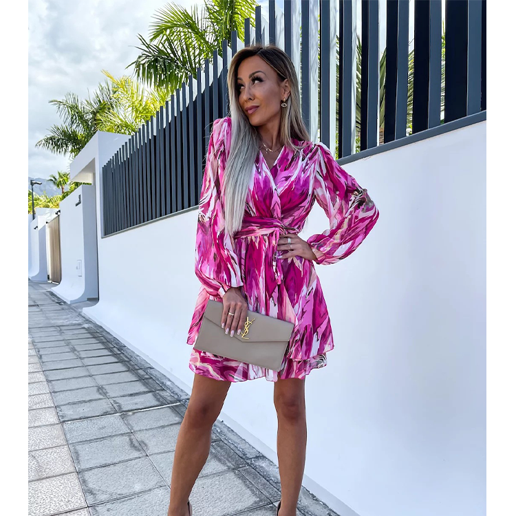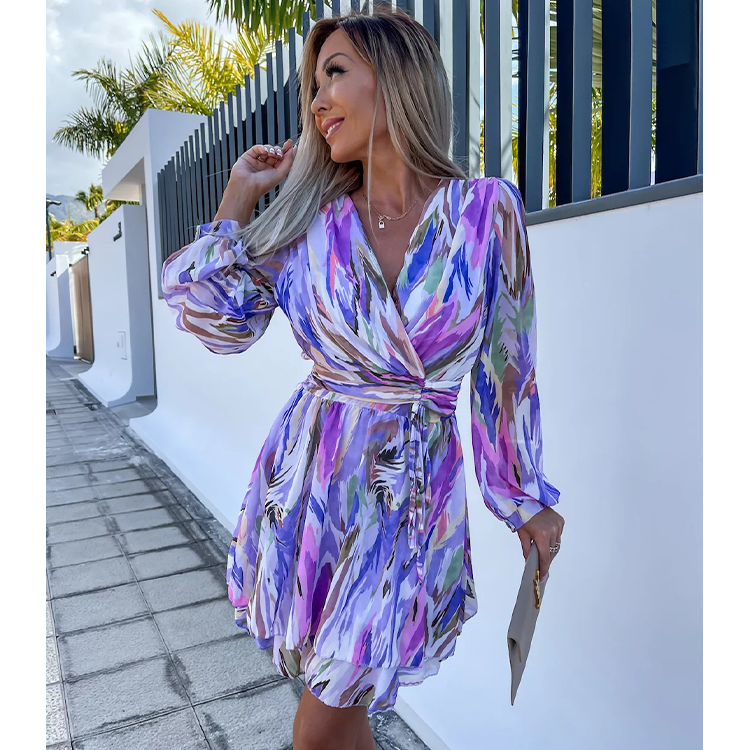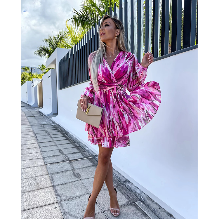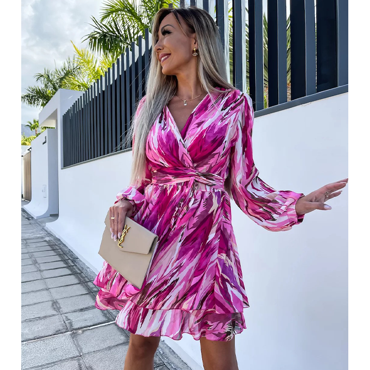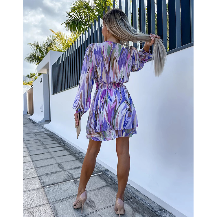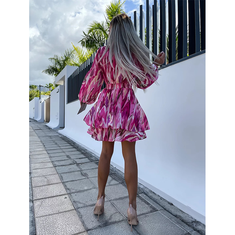 Ruffle V Neck Solid Color Mini Dress