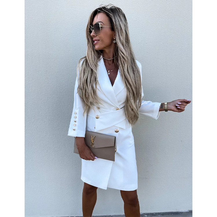 Lapel Double Buttons Mini Dress