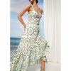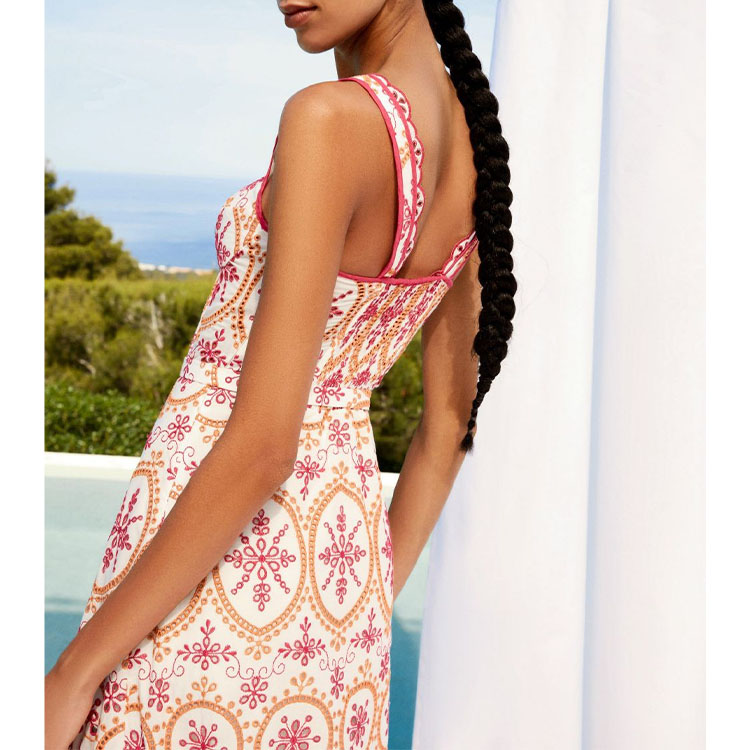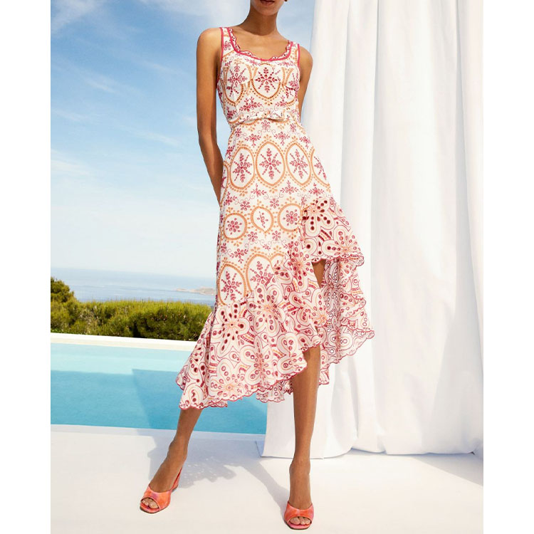 Asymmetrical Embroidery Midi Dress