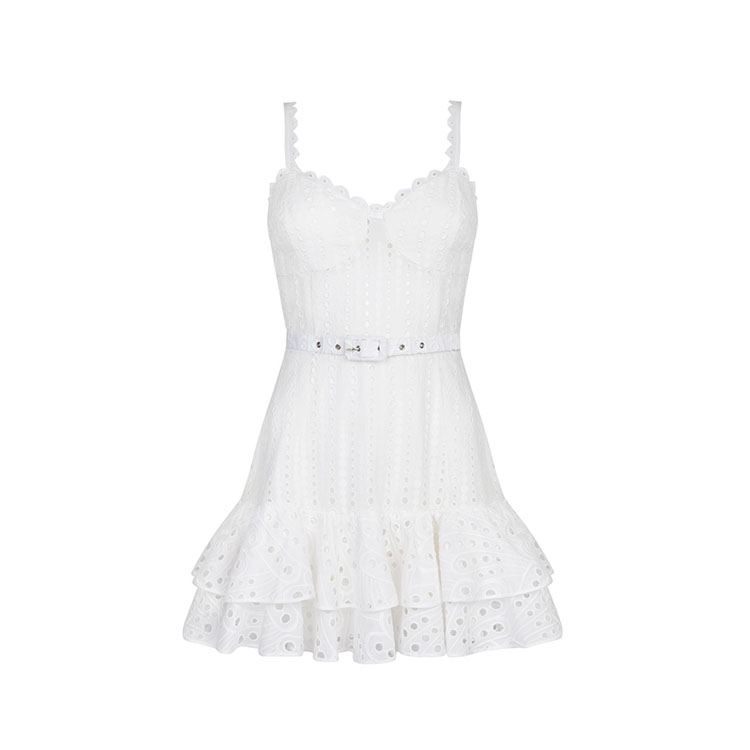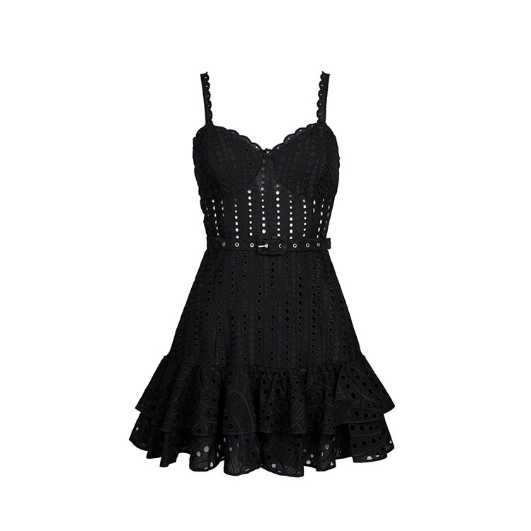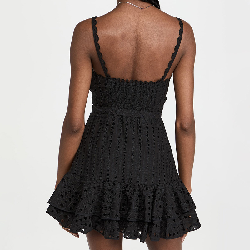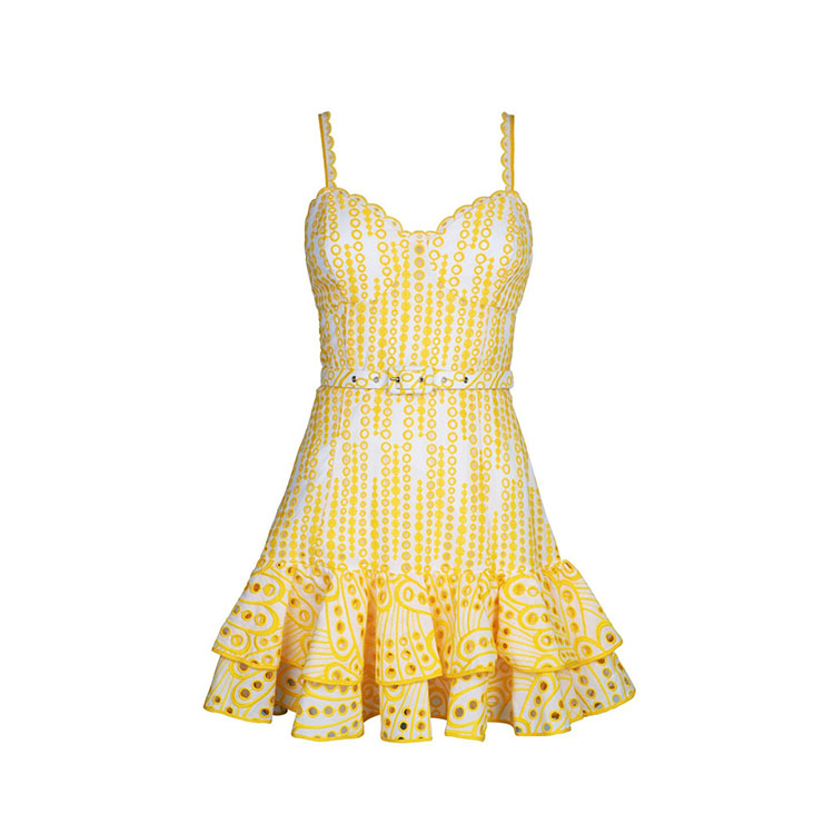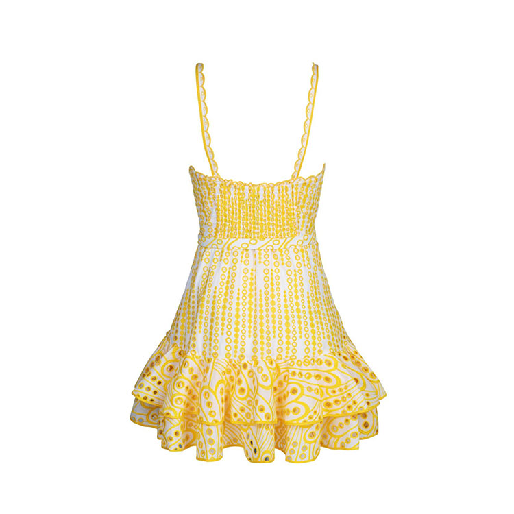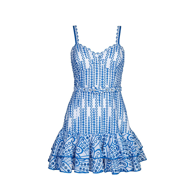 Sling Ruffle Embroidery Mini Dress