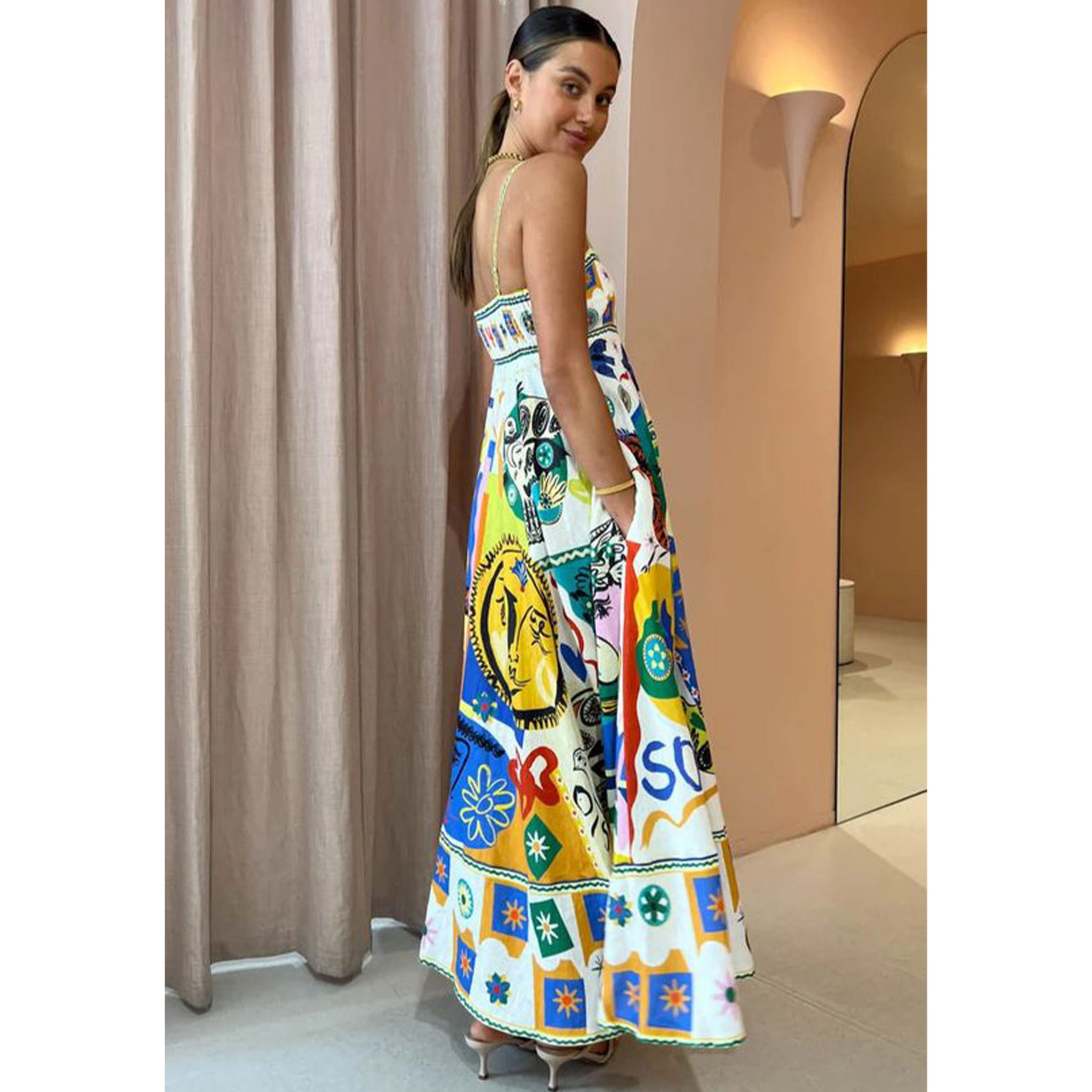 Sling Printed Midi Dress
