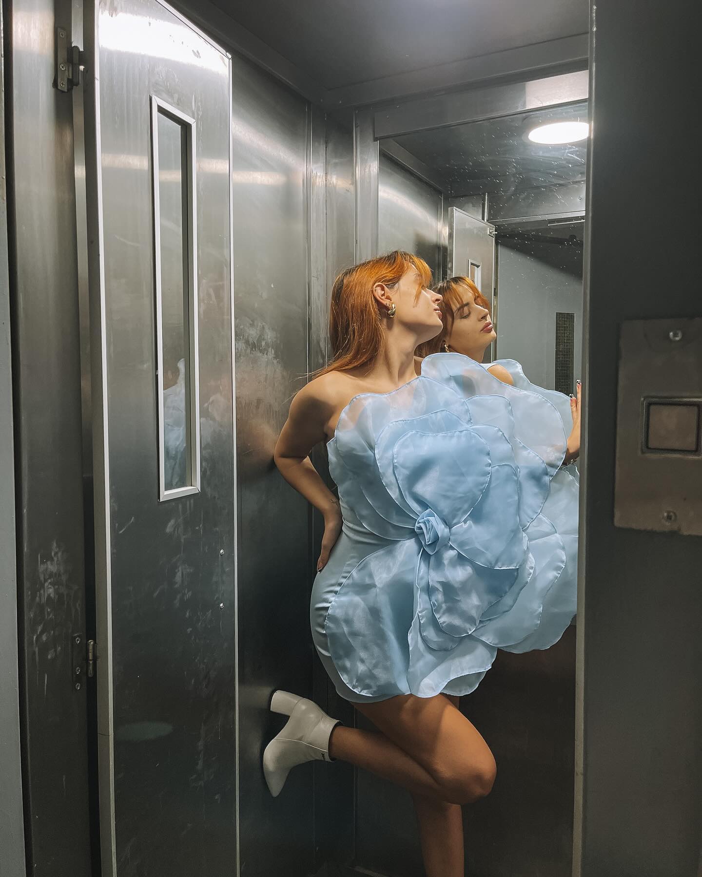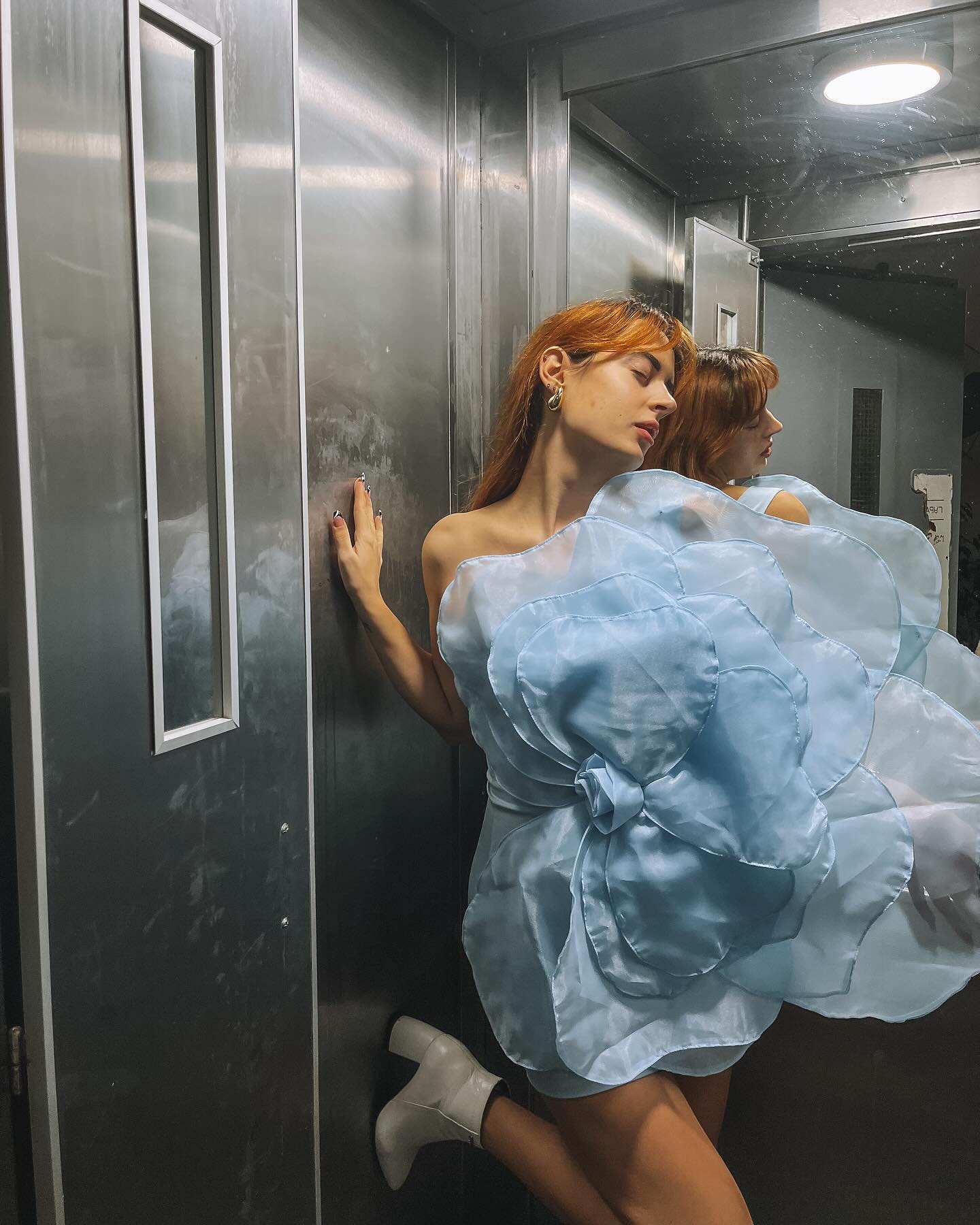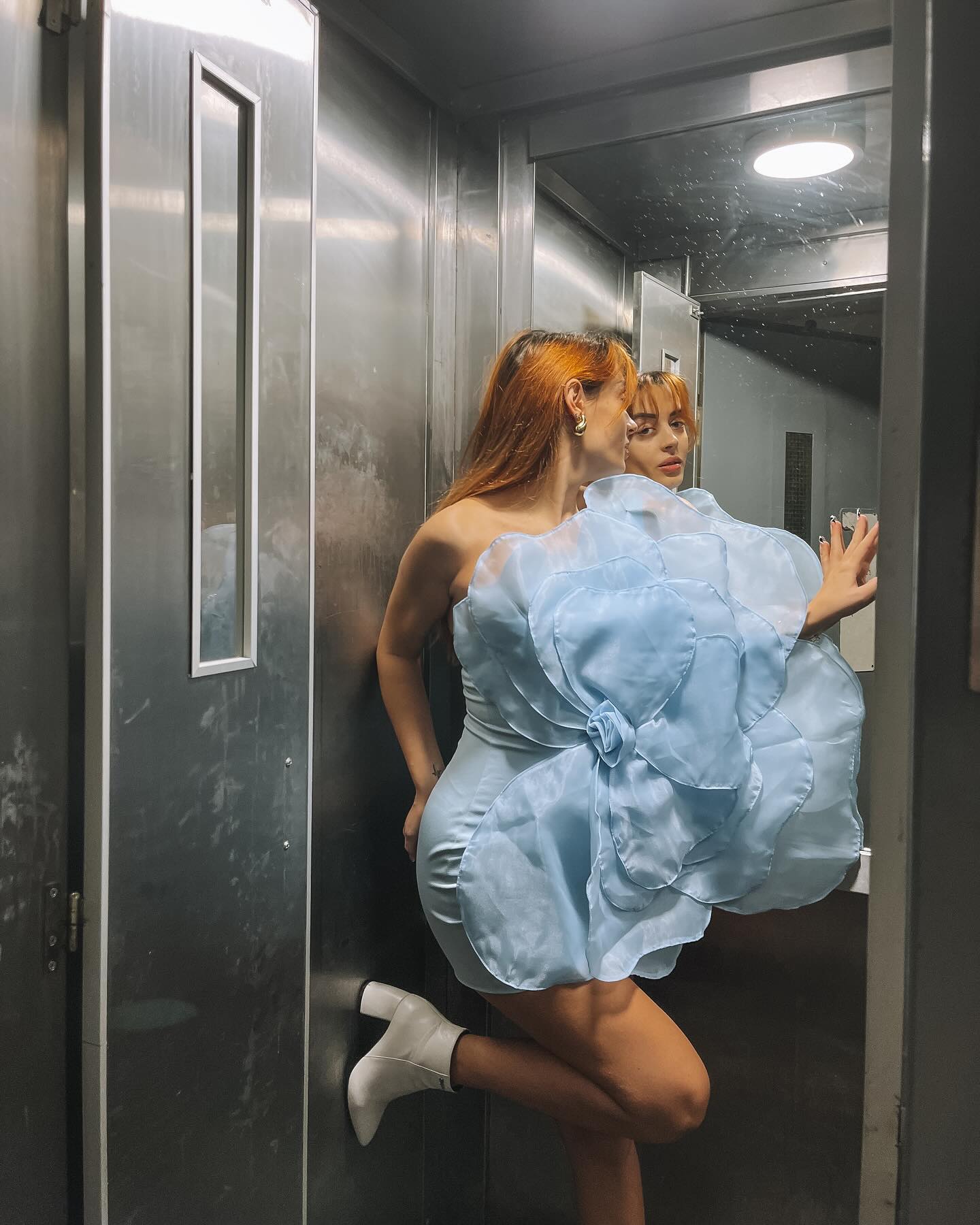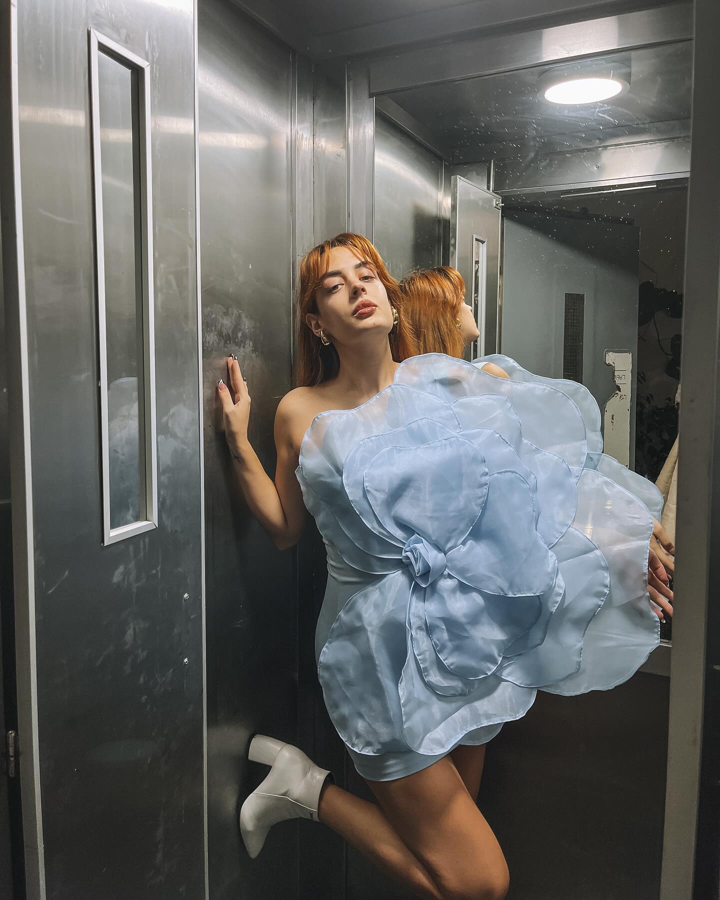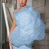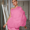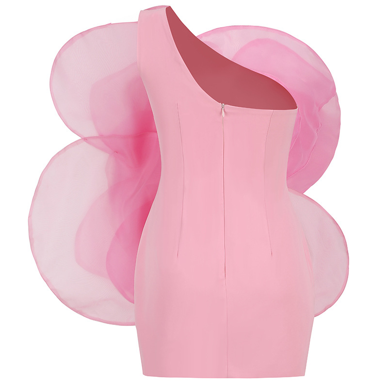 Oblique Shoulder 3D Flower Mini Dress