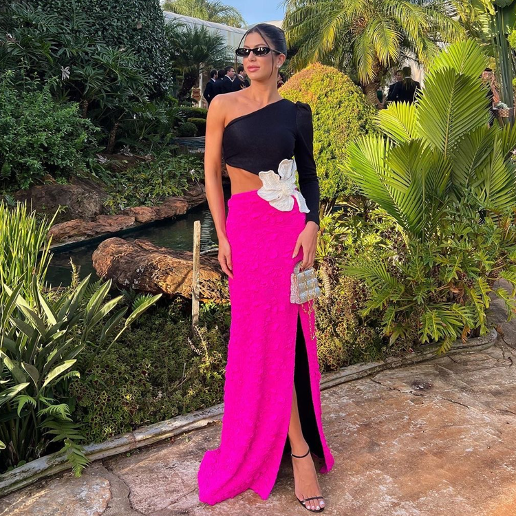Oblique Shoulder Color Block Long-sleeved Dress