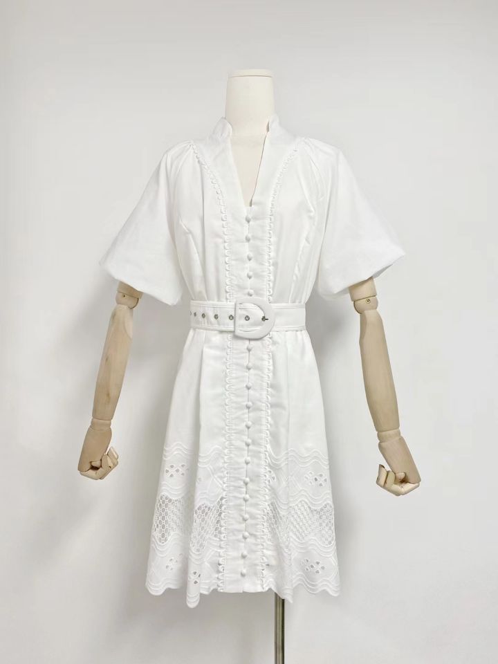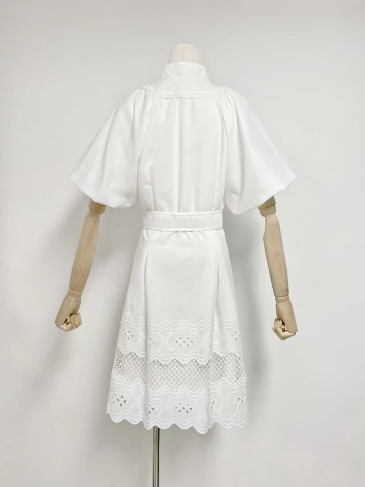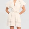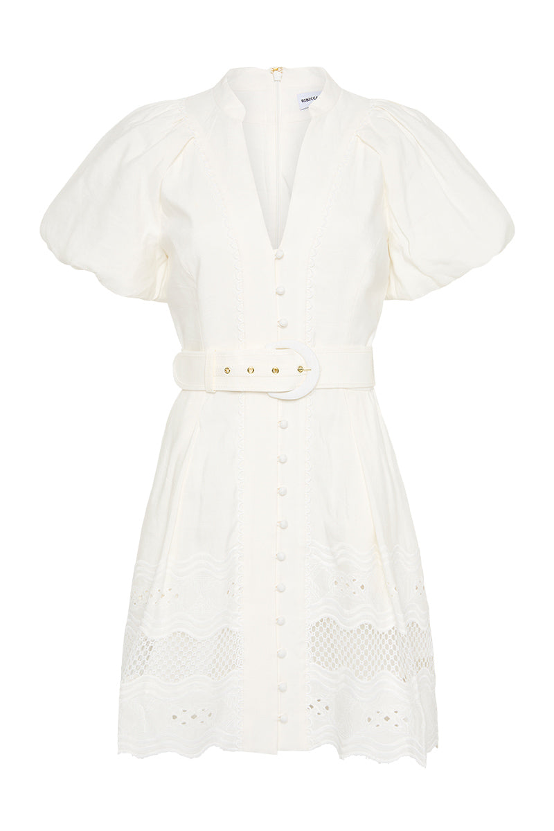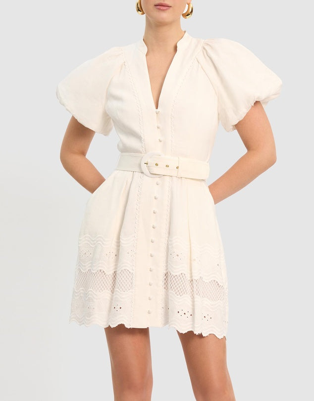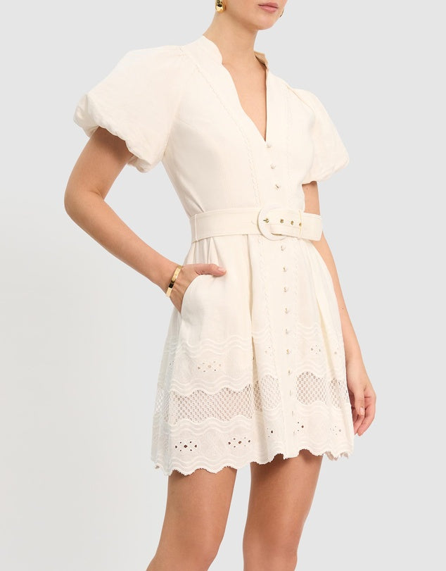 Embroidery Cutout Puff sleeve Mini Dress