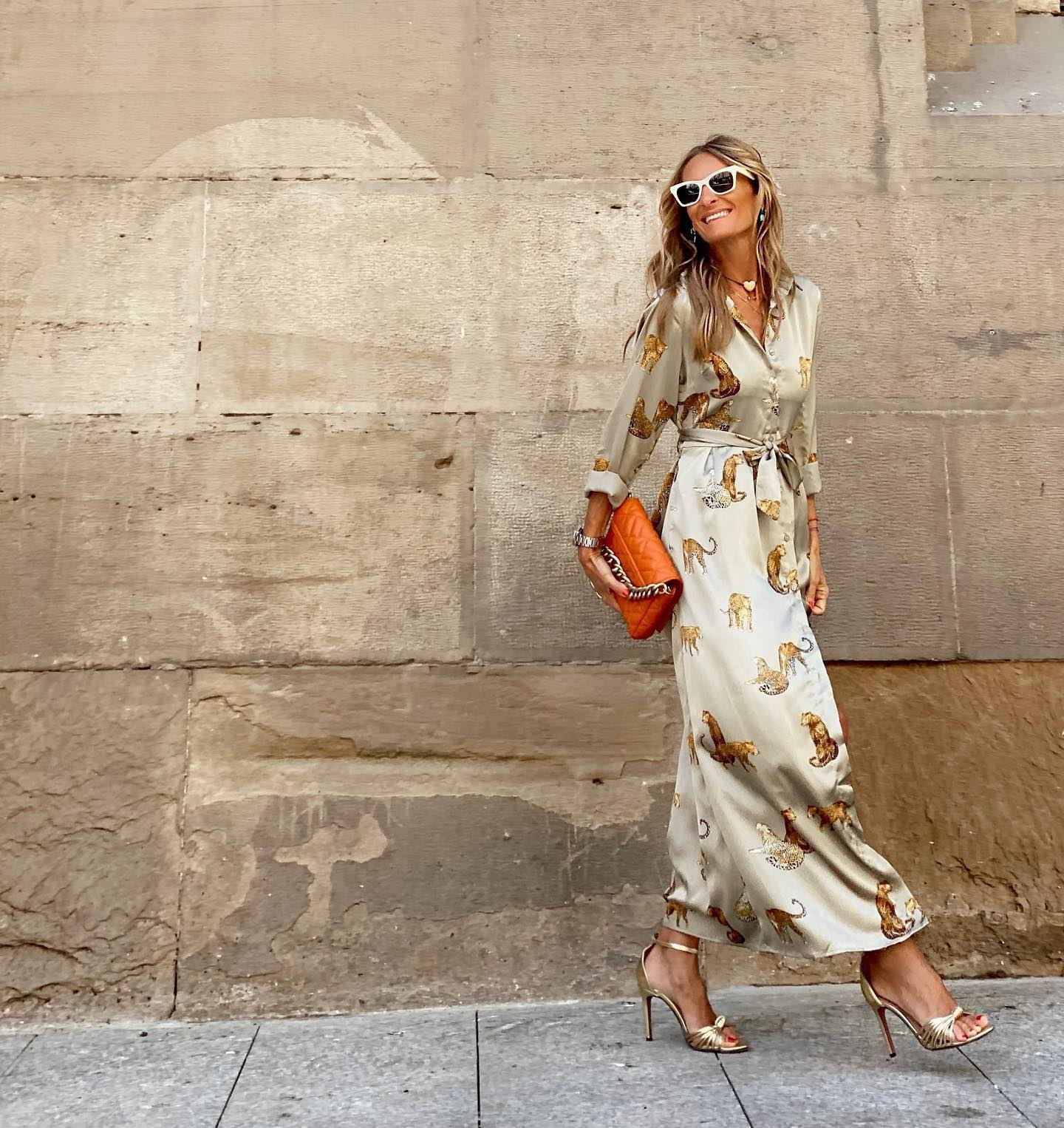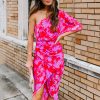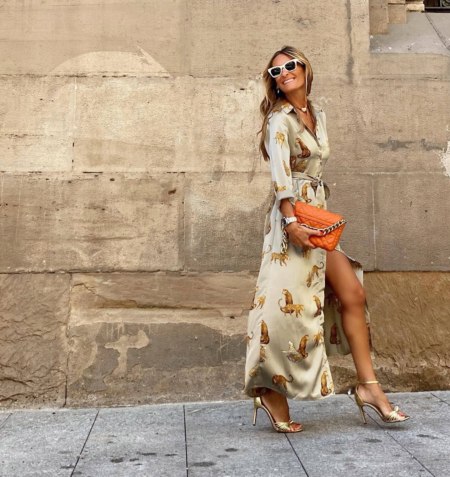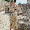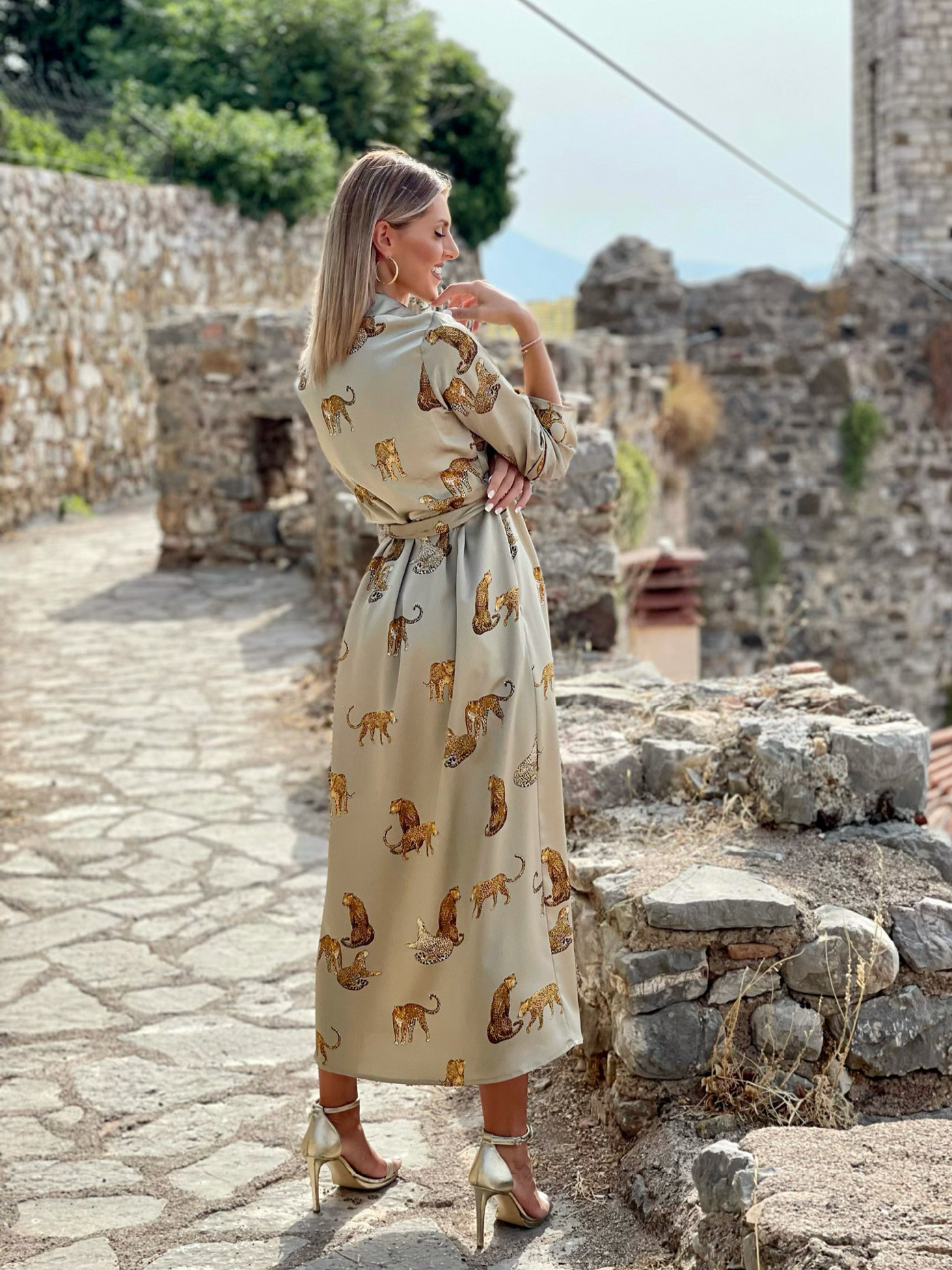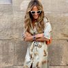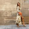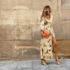 Slit Leopard Printed V Neck Dress