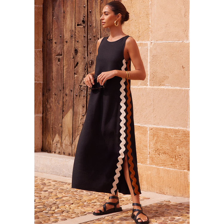Sleeveless Color Block Slit Dress