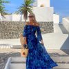 Off Shoulder Puff Sleeve Printed Dress