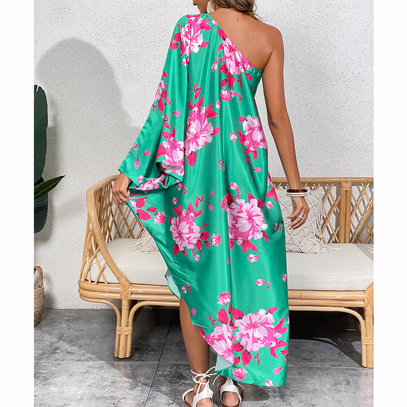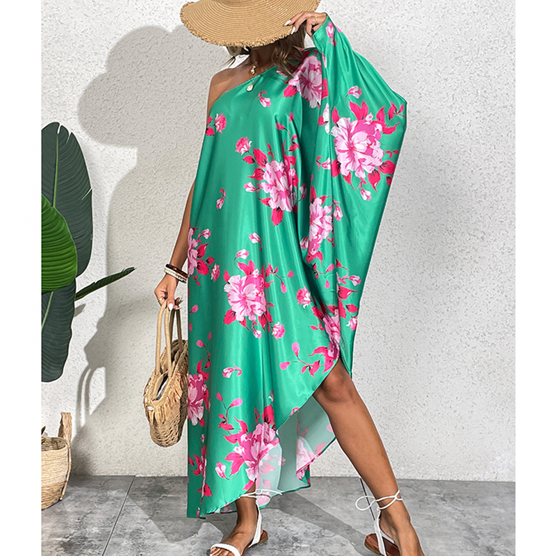 Oblique Shoulder Beach Vacation Cover Up Dress