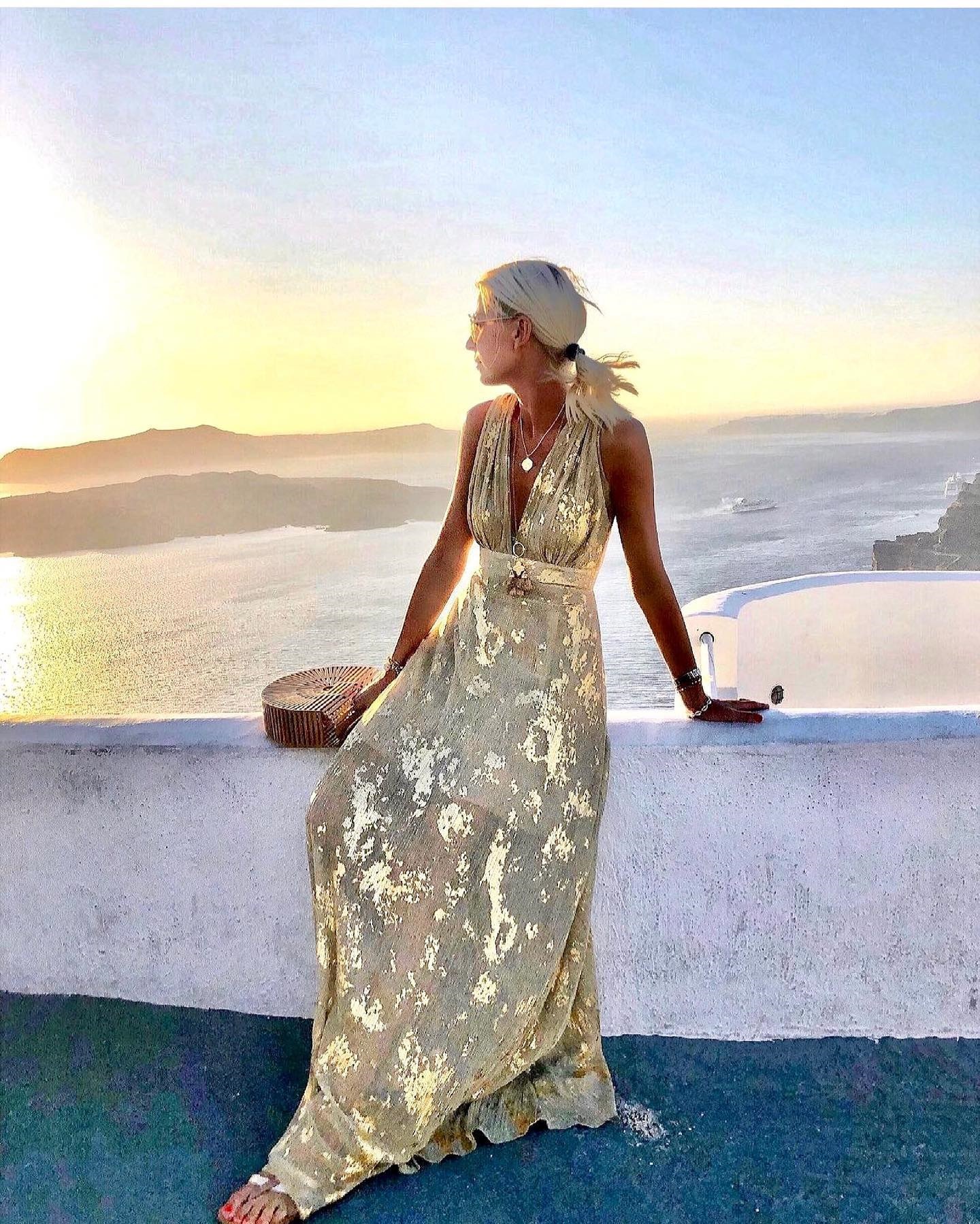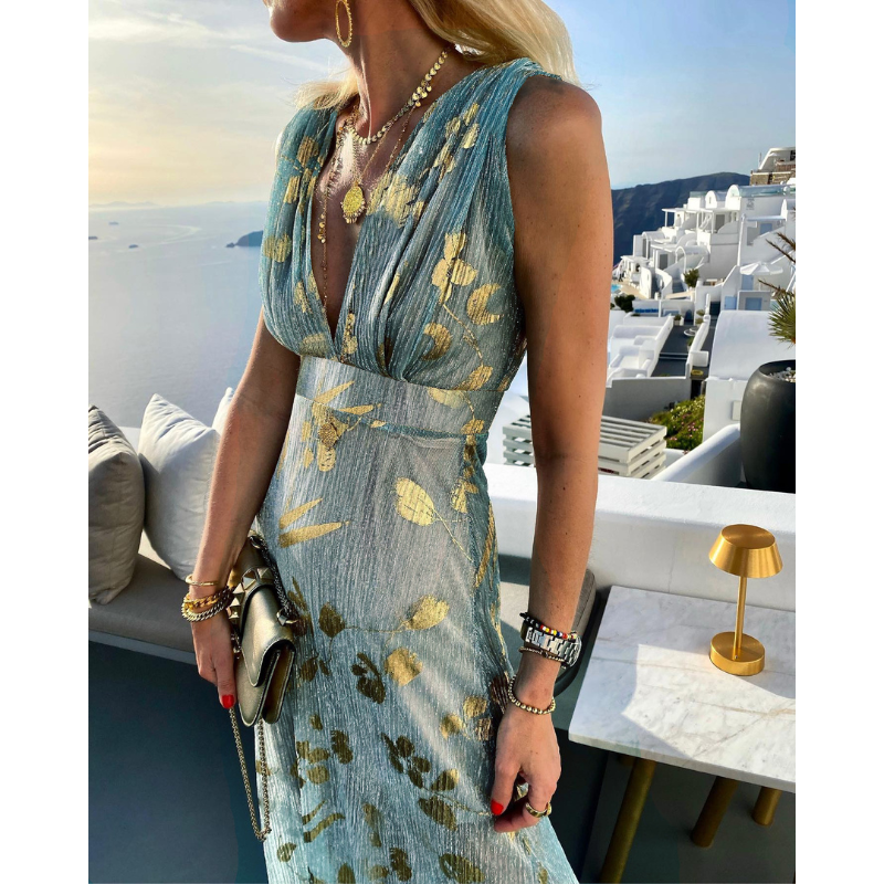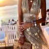 V Neck Glossy Dress