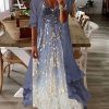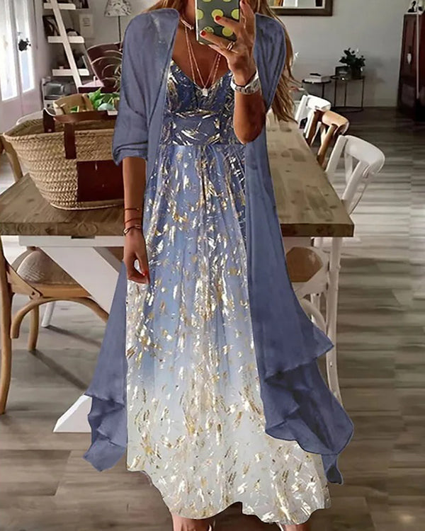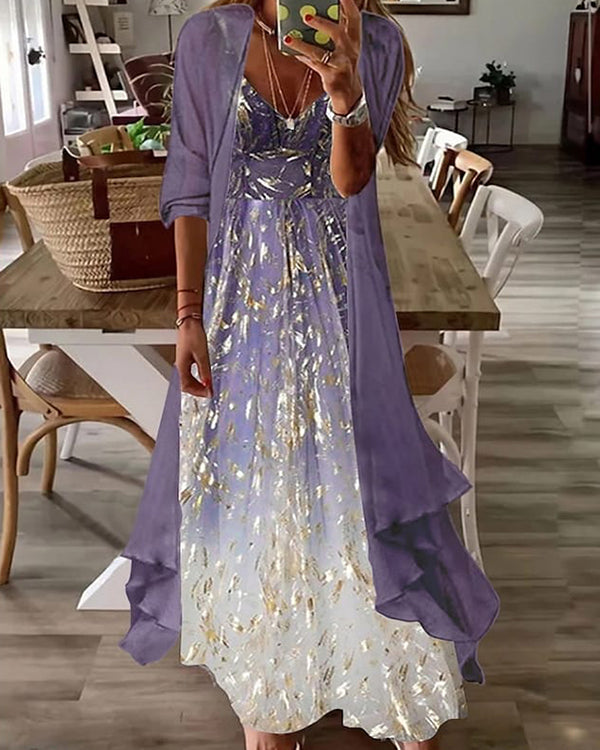 Two-Piece Half-Sleeve Printed Sequined Pleated Casual Sexy Dress