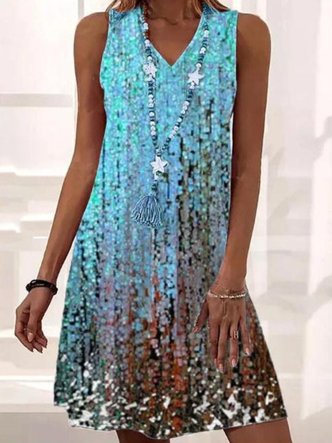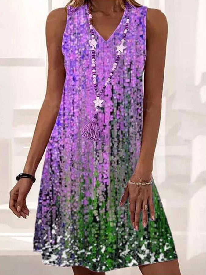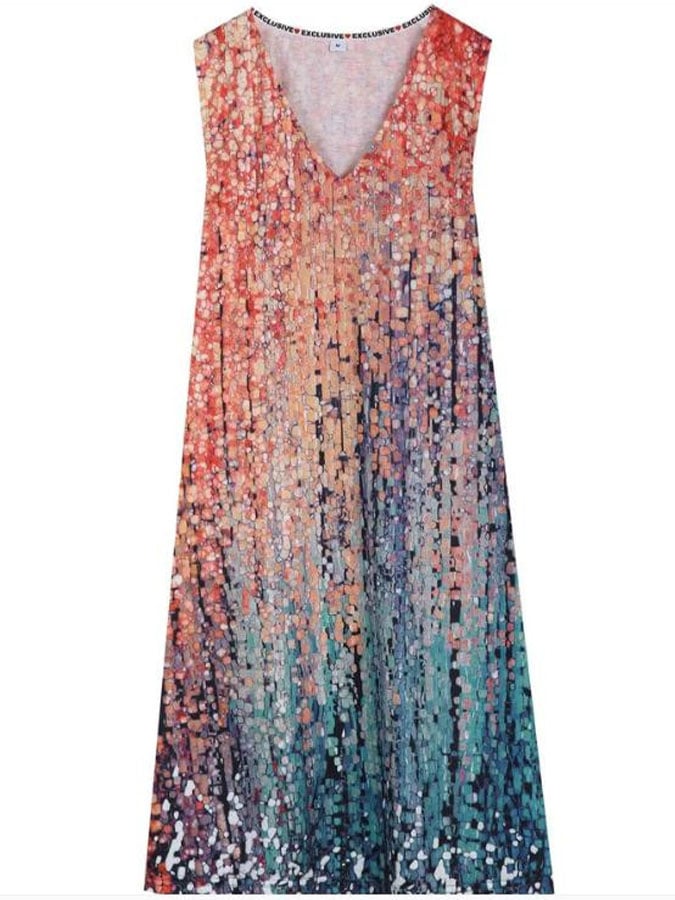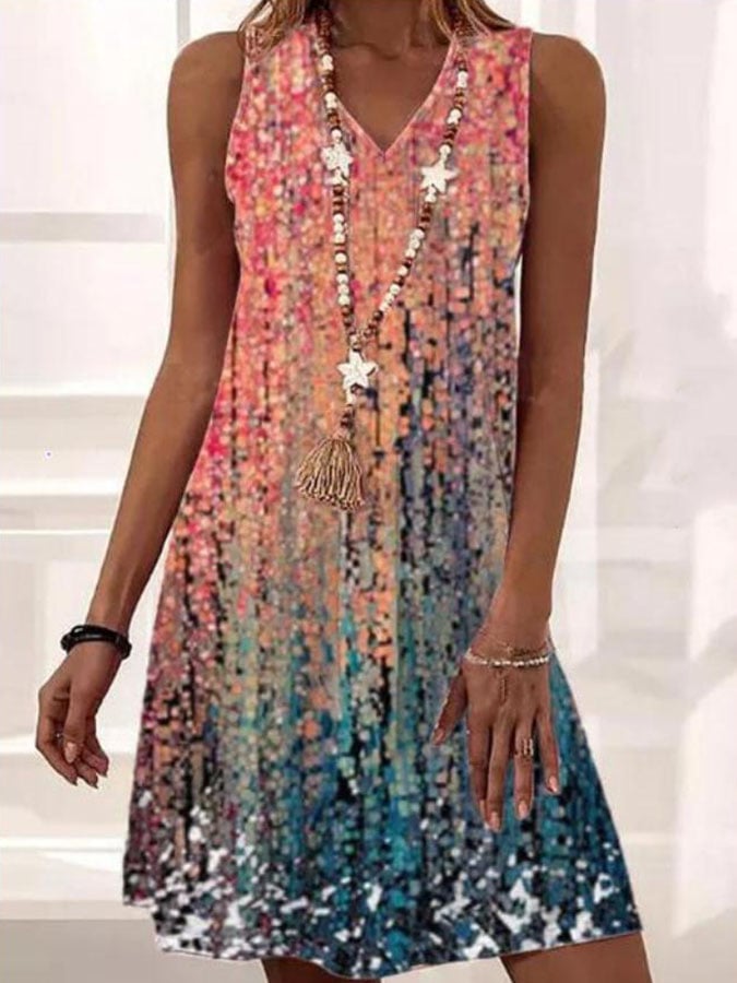 Women’s Sleeveless Loose Ombre Print V-Neck Lounge Dress