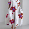 Women’s spring and summer casual loose round neck floral skirt dress