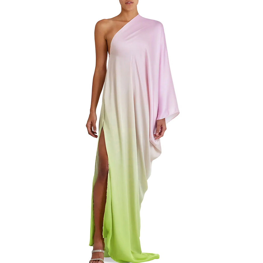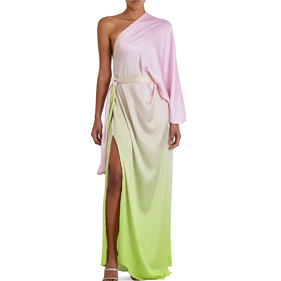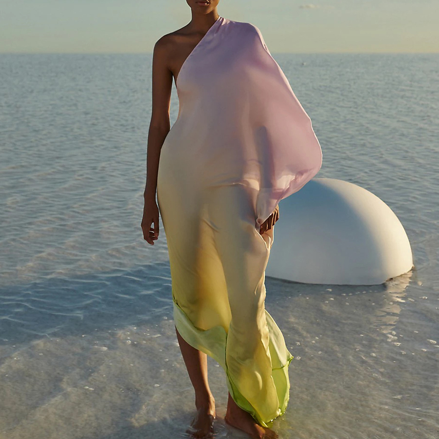 Oblique Shoulder Color Block Beach Vacation Big Dress